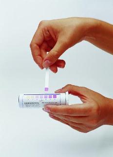 Teststäbchen zur Ermittlung von Rückständen von Nitraten, Phosphaten und anderen Kontaminierungen.